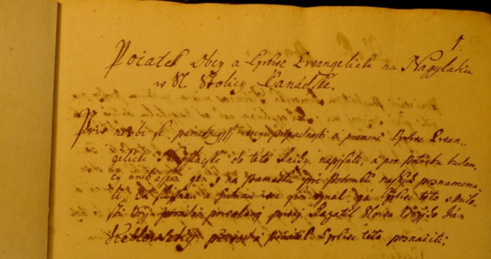 Prepis: Počatek obcy a cirkve Evanjelické na Nagylaku vo Sl. Stolicy Čanádske