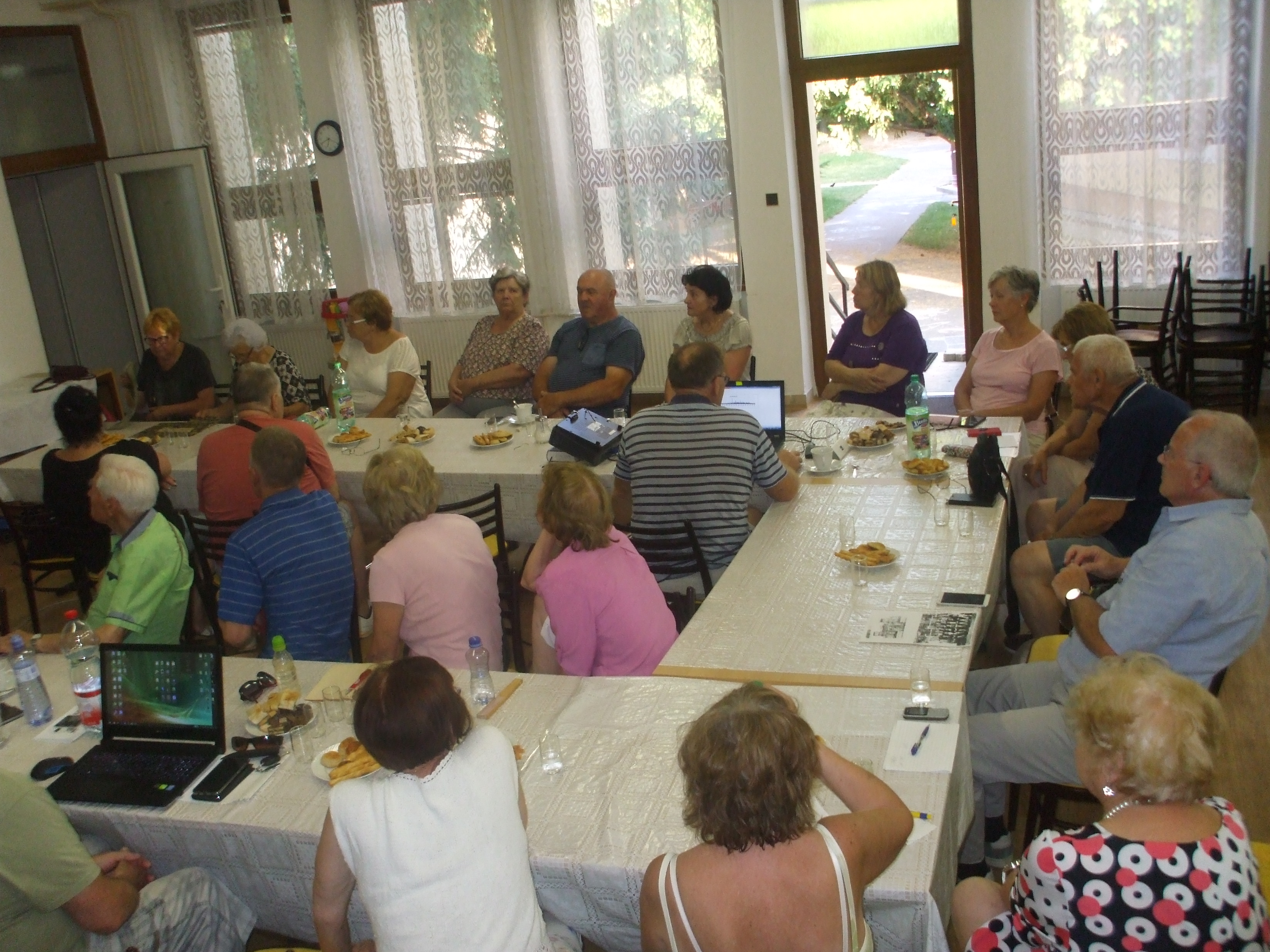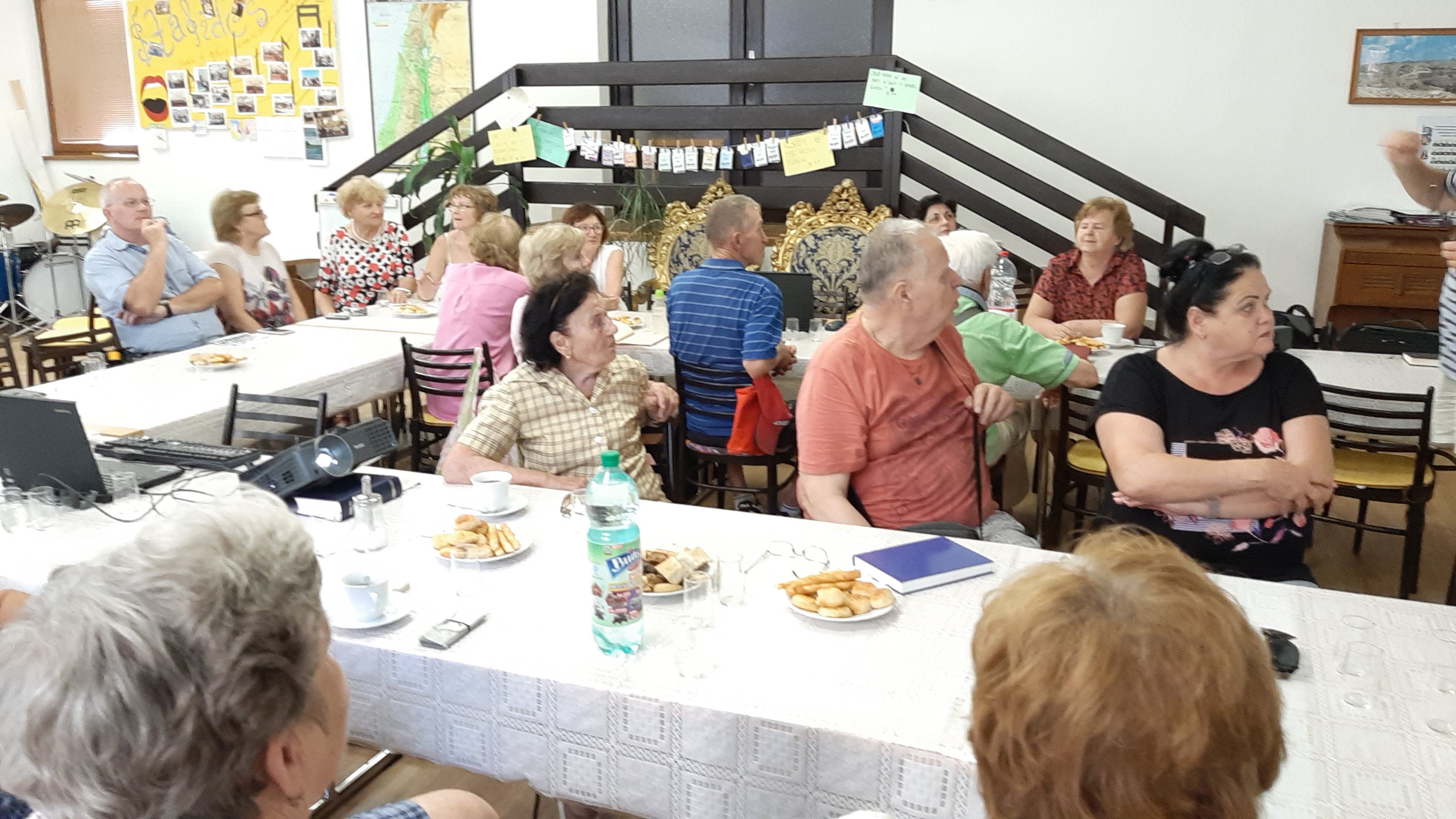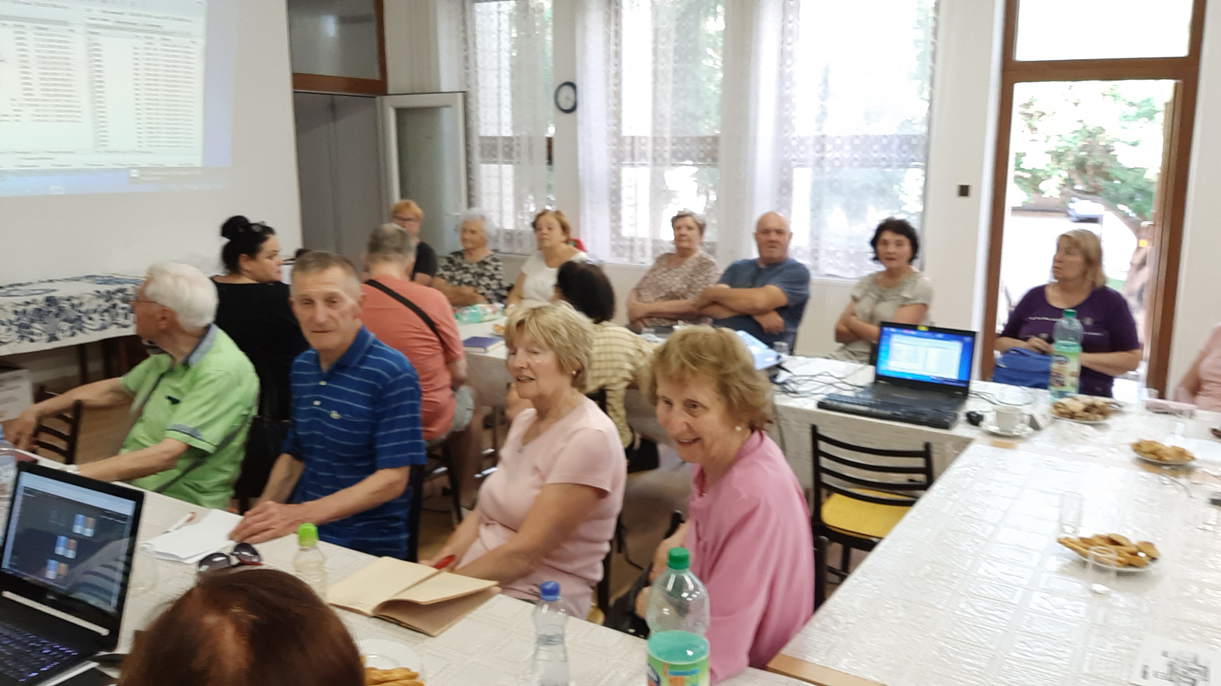 Zišli sa tu nielen potomkovia dolnozemských rodín zo Slovenského Komlóša, z Bánhedešu a Nadlaku, ale aj pezinčania, ktorí sa venujú genealógii. V prvej časti prednášky sa prítomní dozvedeli čo presne robíme, videli ako vyzerajú pôvodné matričné záznamy a ako ich prepisujeme do našej databázy. Prednášajúci, Ing.Ľubomír Kmeť, predviedol niekoľko štatistík vyplývajúcich z našich záznamov, aké mená sa najviac vyskytovali v matrike krstov, najfrekventovanejšie priezviská, či už na Komlóši, alebo V Bánhedeši. Na grafoch mohli vidieť aký vplyv mali niektoré udalosti na obyvateľstvo, či už to boli epidémie cholery, alebo vojny, hlavne 1.svetová. Boli oboznámení v akom stave sú práce na jednotlivých projektoch.