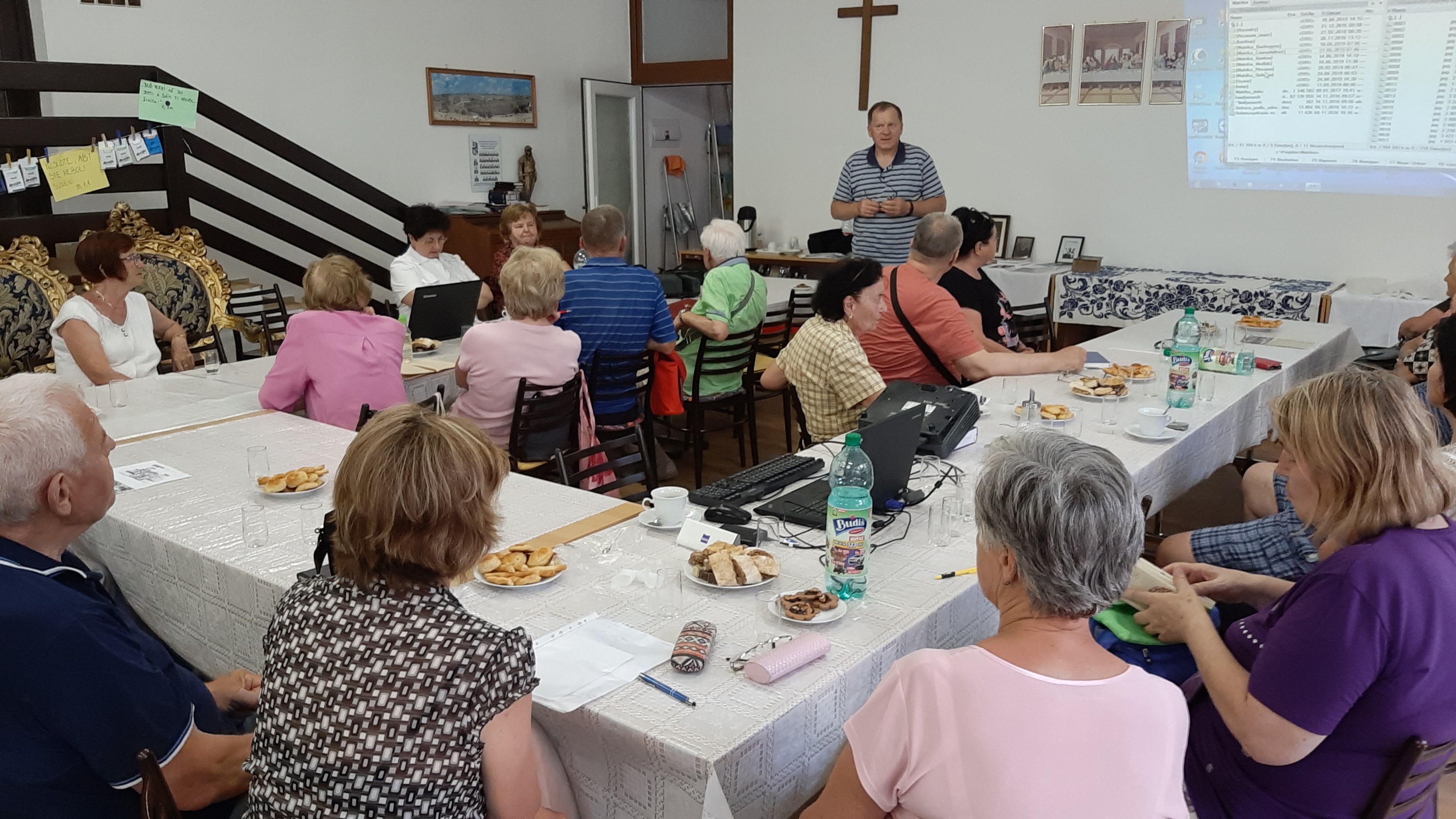 Pani Strapáková zorganizovala stretnutie v priestoroch zborového domu Evanielického kostola v Pezinku a tak sme v dohodnutý termín navštívili toto pekné mestečko, aby sme sa so zanietenou partiou ľudí stretli a urobili pre nich prezentáciu výsledkov našej práce.