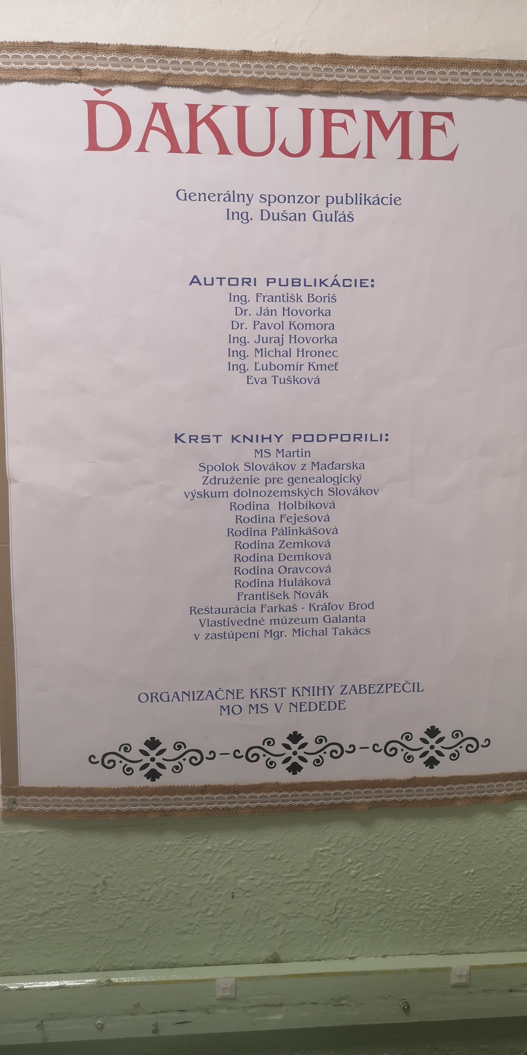 A úplne na záver veľké poďakovanie. Patrí celému výboru Matice slovenskej v Nedede a všetkým, ktorí sa akýmkoľvek spôsobom podieľali na zdarnej príprave a priebehu tohto dôstojného podujatia.