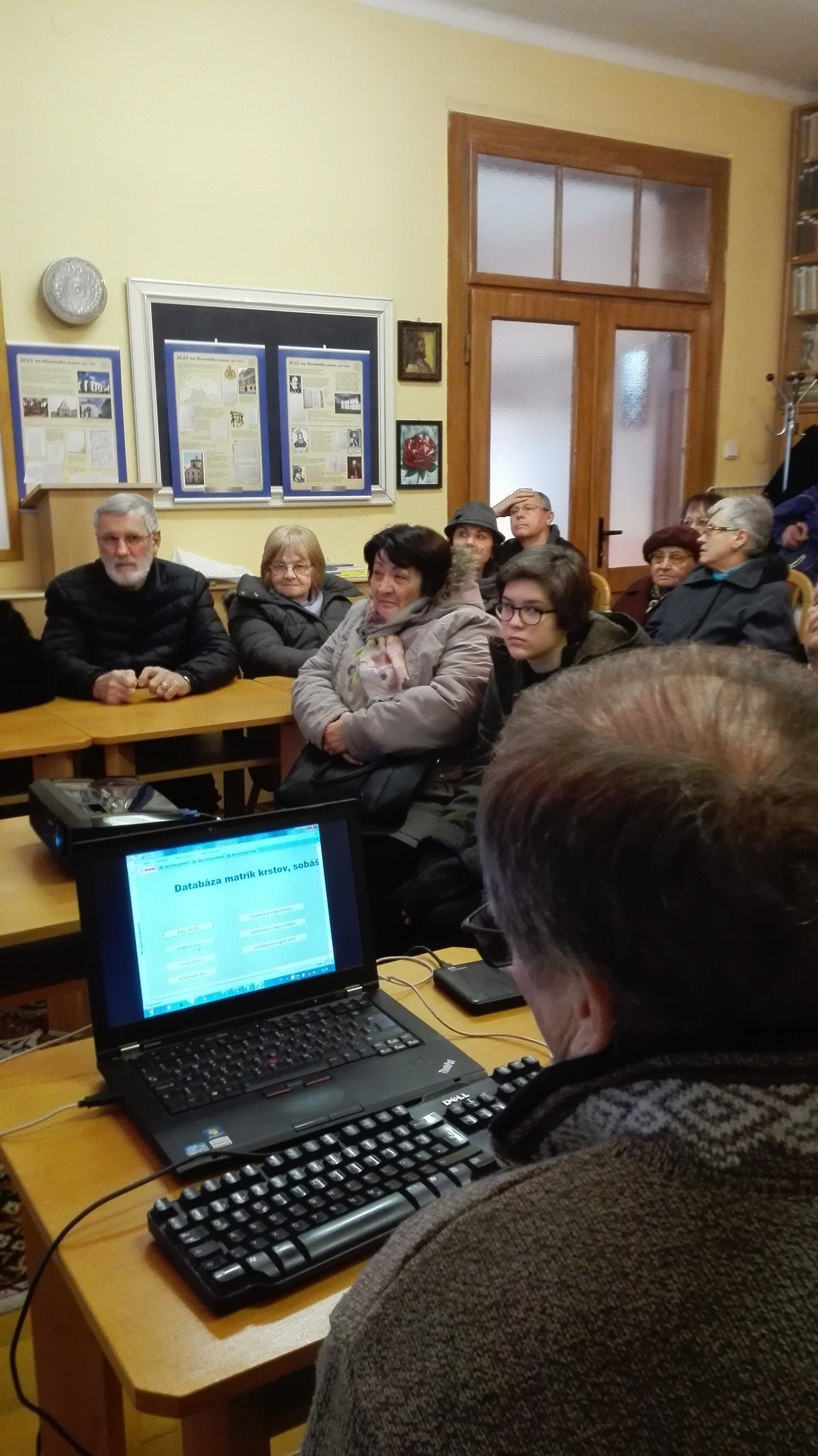 V nedeľu 18.3.2018 sme po dohode s p. farárom Mlynárom zorganizovali v zborovej miestnosti miestneho evanjelického cirkevného zboru prezentáciu projektu "Matrika Komlóša".